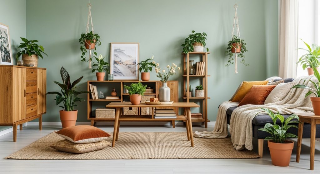 Pair sage with earthy neutrals or warm wood finishes to complete the look. If you love botanical or bohemian-inspired designs, sage is a perfect fit, working seamlessly with boho living room decor.