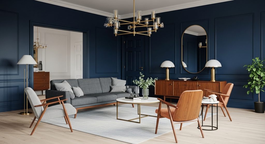 Navy blue has surged in popularity for living rooms in recent years. Its rich, deep tone is calming yet bold, creating a modern and luxurious ambiance. Navy works beautifully with whites, soft grays, or even gold and brass accents.
