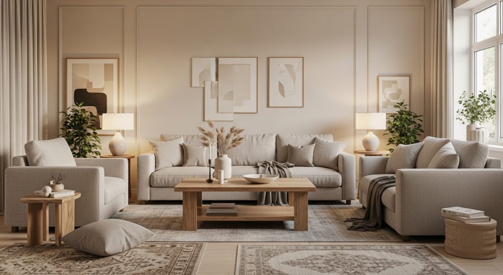 Soft neutrals like warm beige, off-white, or soft taupe are a timeless choice. These hues provide a clean, airy backdrop that complements nearly every decorating style, from minimalist living rooms to boho-chic spaces.