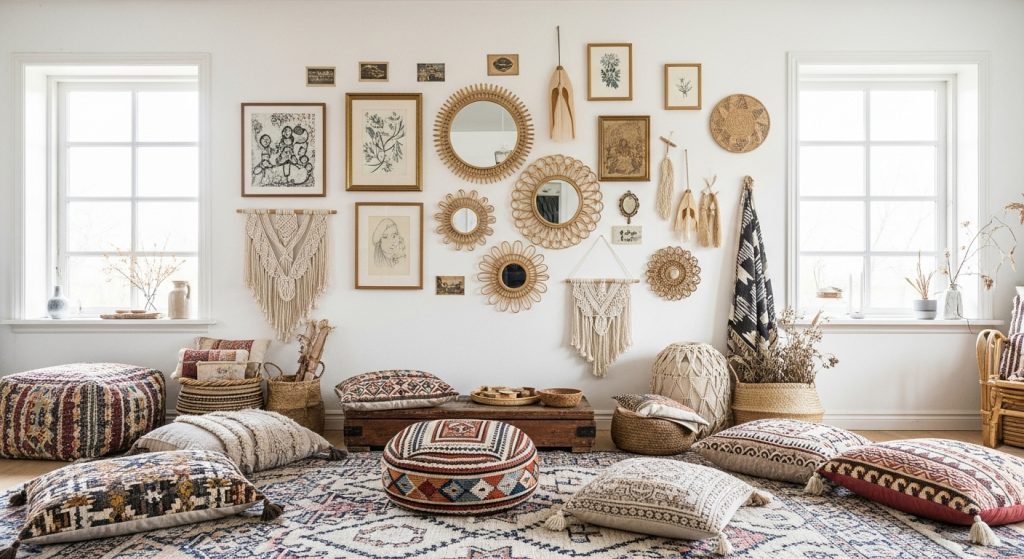 This curated, artistic approach reflects the boho ethos — collecting, layering, and telling stories. If you want more wall decor inspiration, you might love browsing these living room wall decor ideas to plan your perfect boho gallery.