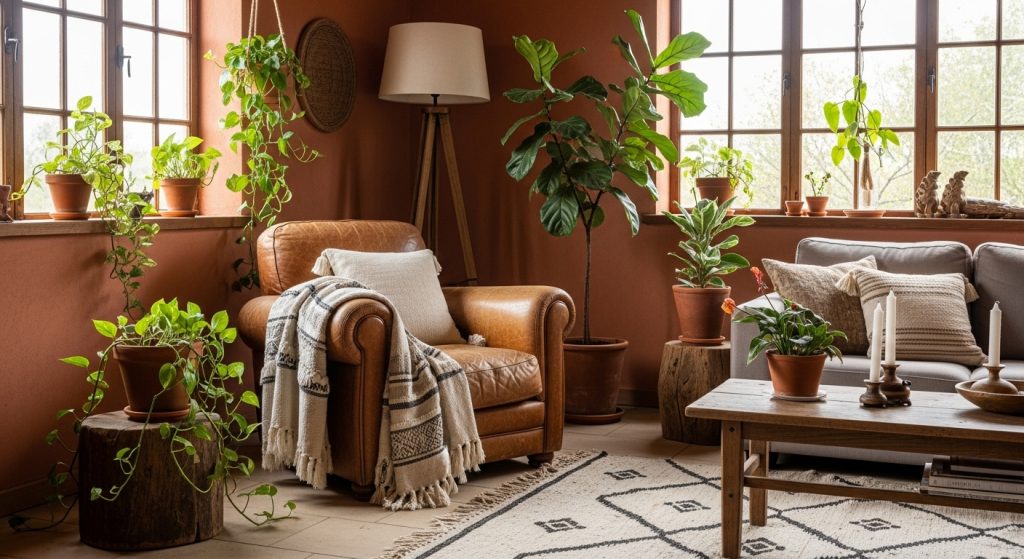 ✅ Use natural elements — Wood, stone, and greenery pair beautifully with cozy color palettes.