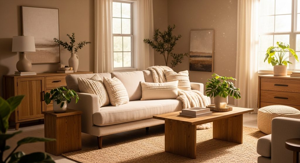 If you’re inspired to take your beige-themed living room a step further, explore living room decor ideas for complementary accessories and furniture pairings.