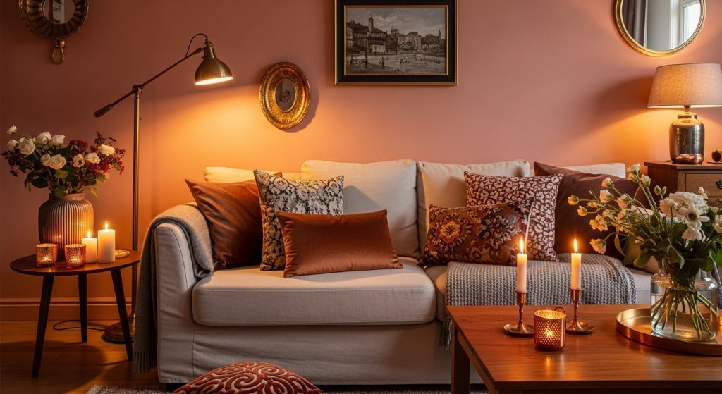 ✅ Incorporate warm lighting — Soft, warm-toned bulbs can make your color choices feel even cozier.