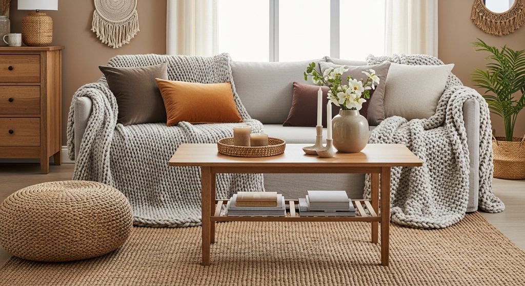 One of the easiest ways to bring coziness into your living room is through texture. Think chunky knit throws, soft velvet pillows, plush rugs, and even woven wall hangings. Combining different textures adds visual depth and creates a sensory-rich environment that feels warm and inviting.