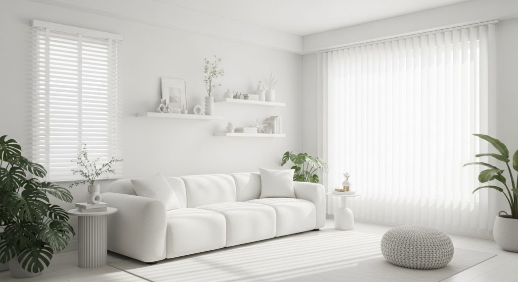 Looking to create a light, airy vibe? Sheer blinds offer partial transparency, allowing sunlight to softly filter through while still offering some privacy. They’re ideal for minimalist living rooms where simplicity and subtlety are key.
