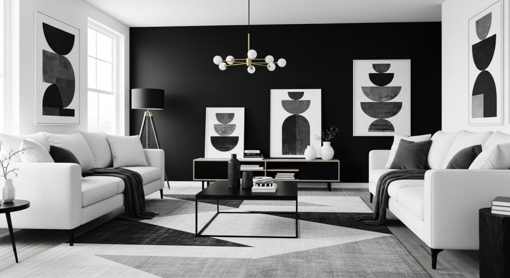 If you love dramatic flair, a black and white living room is a classic choice that feels timeless yet modern. Black accent walls, trim, or furniture pieces can add depth and sophistication, while crisp white balances the look for a clean, high-contrast design. Add metallic details like brass or chrome to elevate this scheme even more.