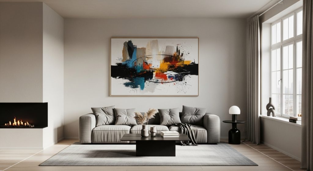 One oversized piece of art can ground a room and create a dramatic visual impact. Go with abstract styles, nature photography, or custom portraits.