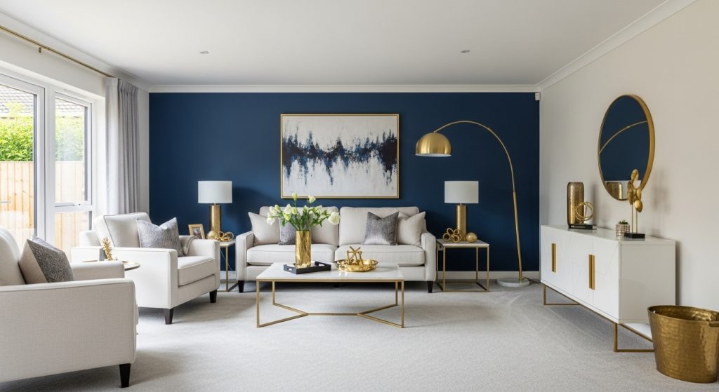 Want a quick refresh? Paint one wall in a bold shade—navy, forest green, or terracotta—to add contrast and drama. This trick works great in both small and large rooms.