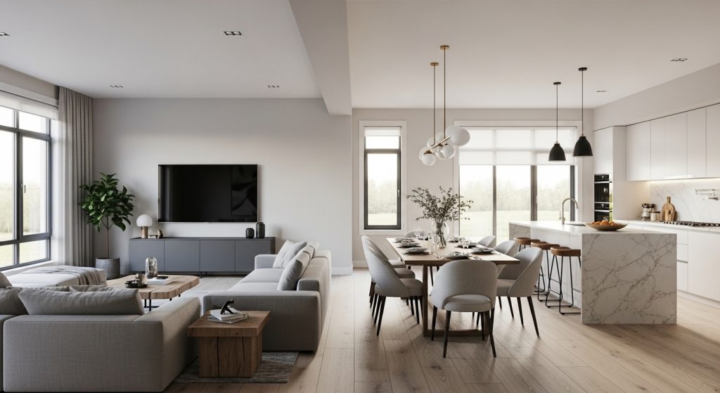 One of the most popular living room interior design ideas is to adopt an open-concept layout. By breaking down walls between your living, dining, and kitchen areas, you create a seamless flow that makes the space feel larger and airier. If you want more tips on maximizing compact layouts, check out these small living room layout ideas.
