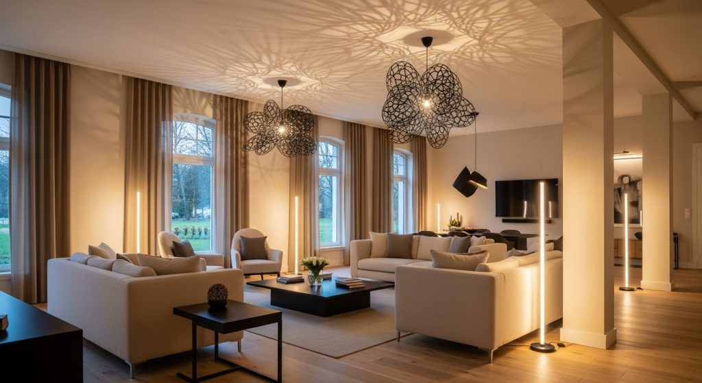 Lighting does more than illuminate — it creates mood and highlights architectural details. Try installing statement pendant lights, sleek floor lamps, or even a sculptural chandelier to give your living room a designer touch. You can find more inspiration on overall living room design ideas for a cohesive look.
