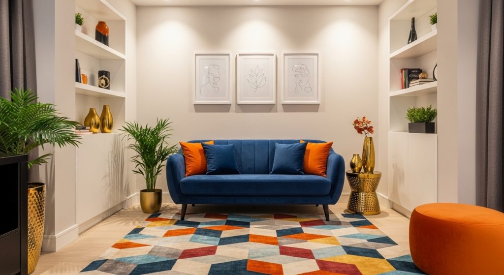 An area rug can do wonders to visually define a small living area within an open-plan home. Choose a rug with a subtle geometric pattern or a neutral color to keep things modern. Rugs help anchor the furniture layout, making the room feel intentional and cozy.