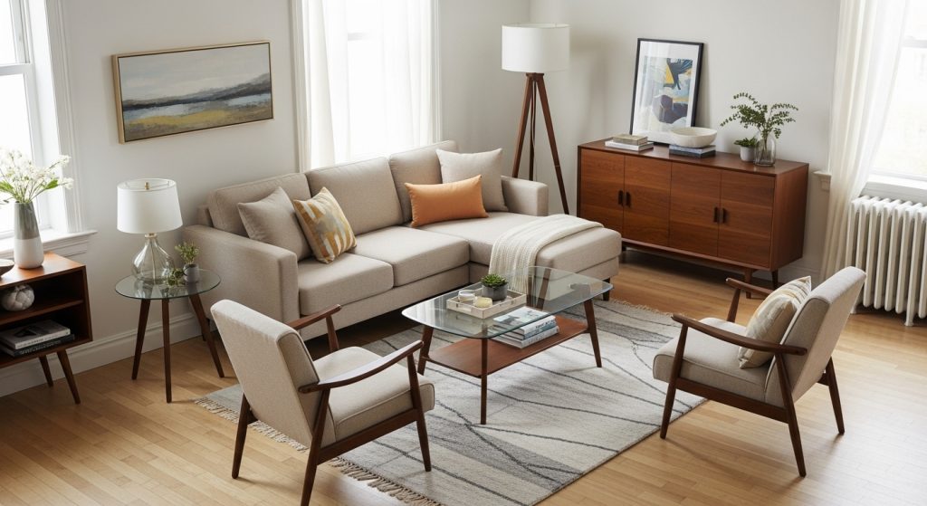 Oversized furniture can easily overwhelm a small room. Instead, choose pieces with slim, clean lines and legs that lift them off the floor. This approach creates a more open flow and prevents the space from feeling cramped. Sectional sofas designed for small spaces are a smart choice if you need plenty of seating.