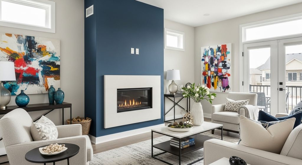 While you want to keep most of your design streamlined in a small space, introducing a single bold element can create impact without overwhelming the room. For example, a striking piece of art, an accent wall, or a beautiful fireplace can serve as the visual anchor for the entire space.