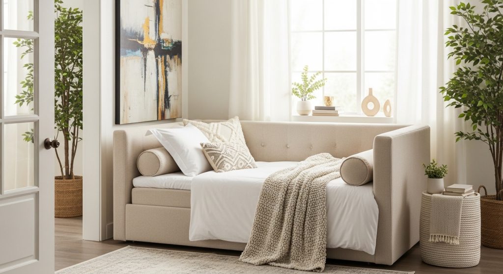 This two-in-one solution is perfect for studio apartments or guest-friendly spaces. It serves as a couch by day and a bed by night.