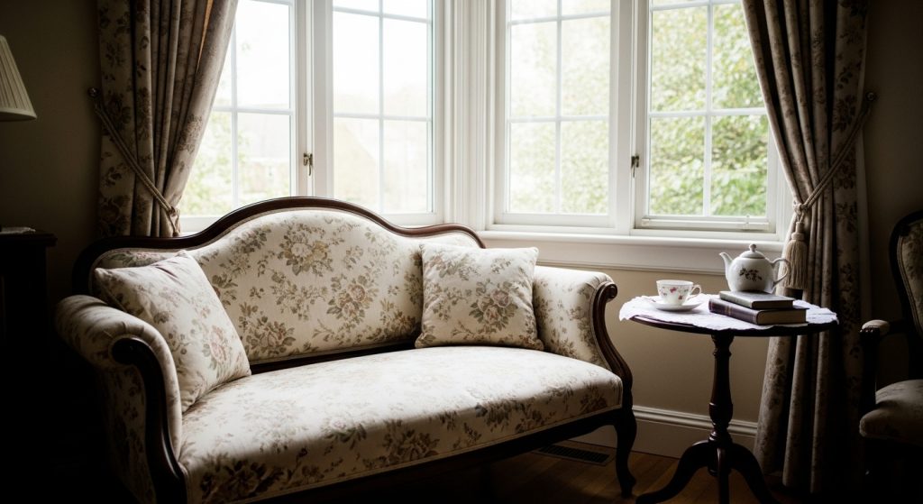A settee offers an elegant and compact seating option. It’s perfect for small corners or bedrooms.