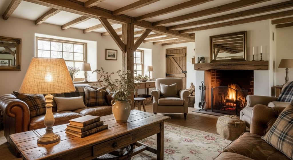 Think distressed wood bases, burlap lampshades, and warm ambient lighting. Rustic lamps shine in cozy living rooms, especially when styled with plaid or knitted textiles.